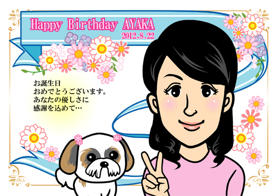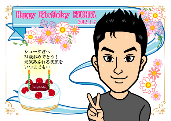 リボン、花、ケーキと、誕生日のアイテムを取り入れた人気のデザインです。
