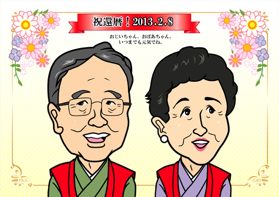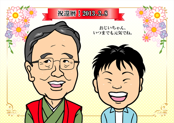 還暦、喜寿、古希等の似顔絵(1~3名)のご紹介です。